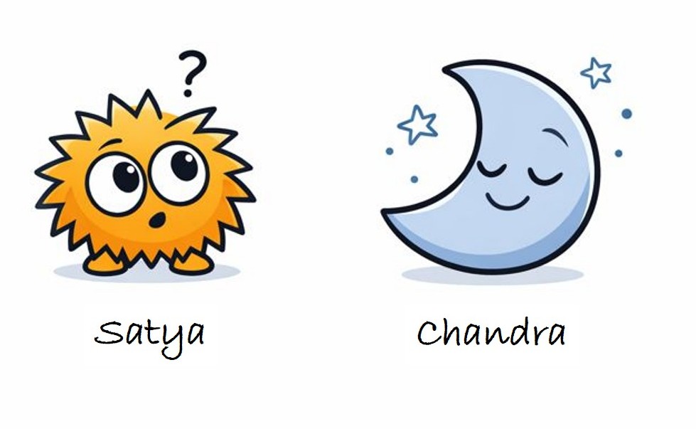 Chandra and Satya are fictional characters created to discuss physics concepts, questions, and common misconceptions through dialogue and reflection. Inspired by the scientific spirit of Chandrasekhara Venkata Raman and Satyendra Nath Bose, these conversations aim to bridge observation, intuition, and formal reasoning in physics. Each conversation presents a conceptual discussion, followed by references to formal notes where applicable.